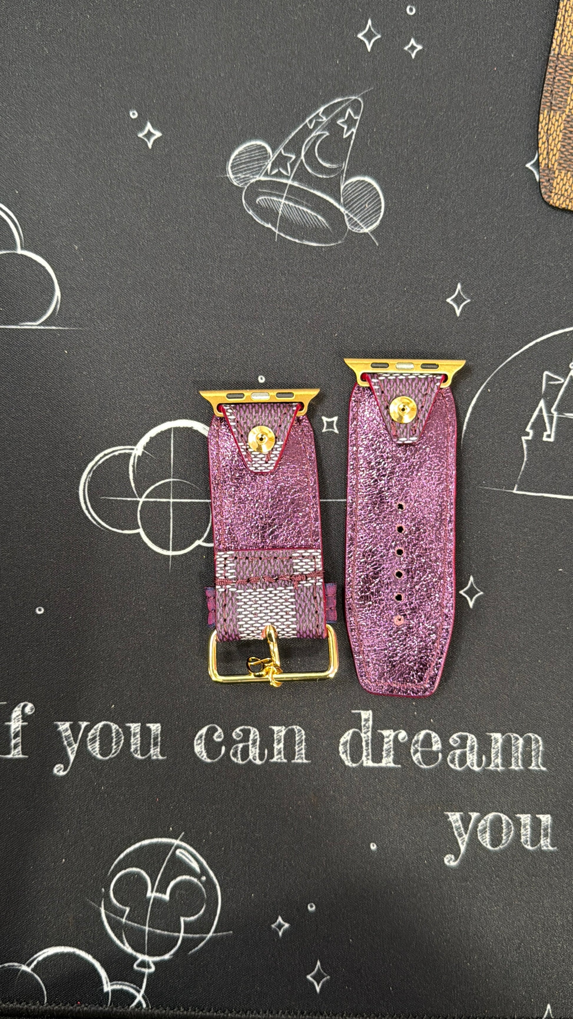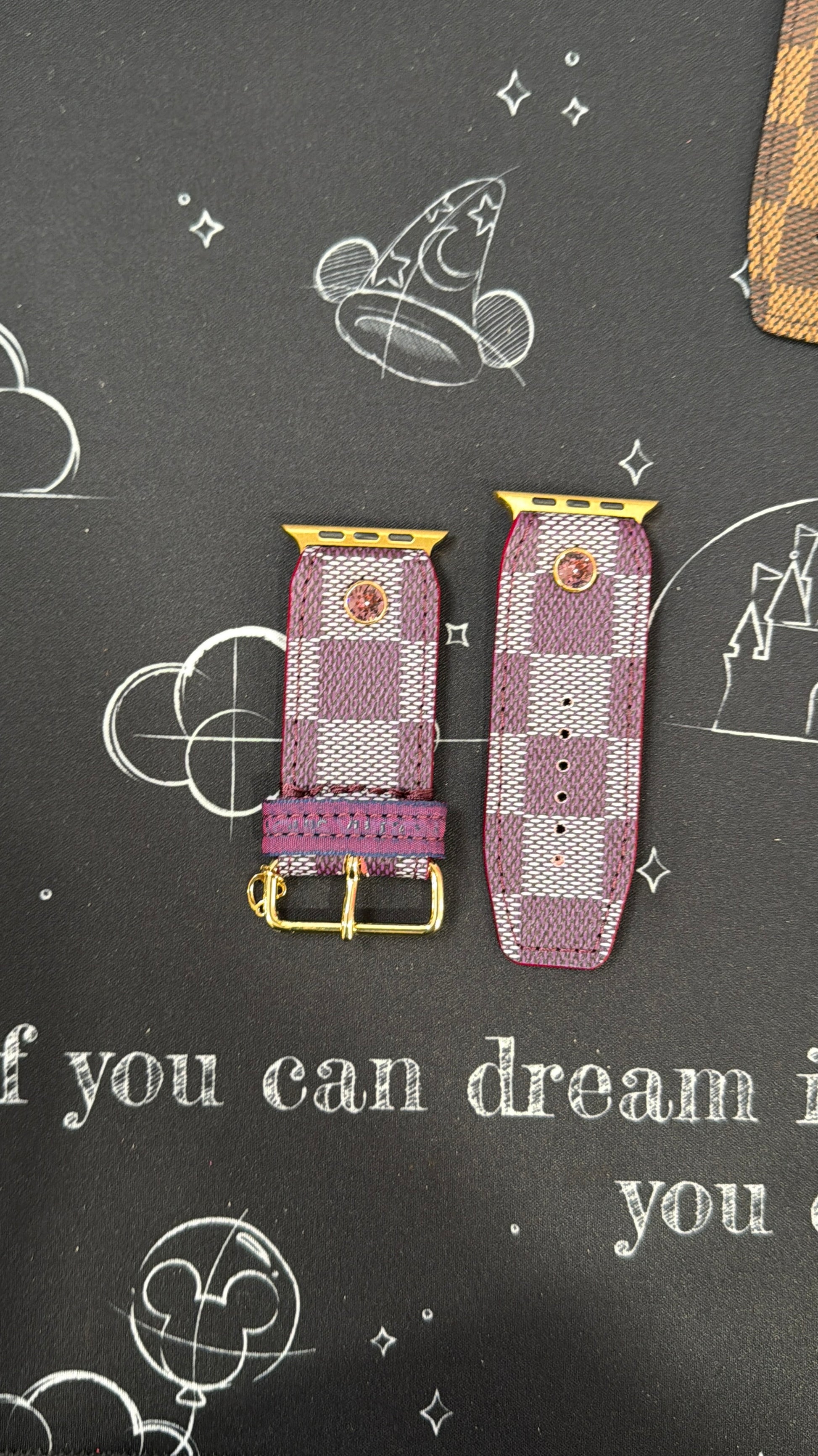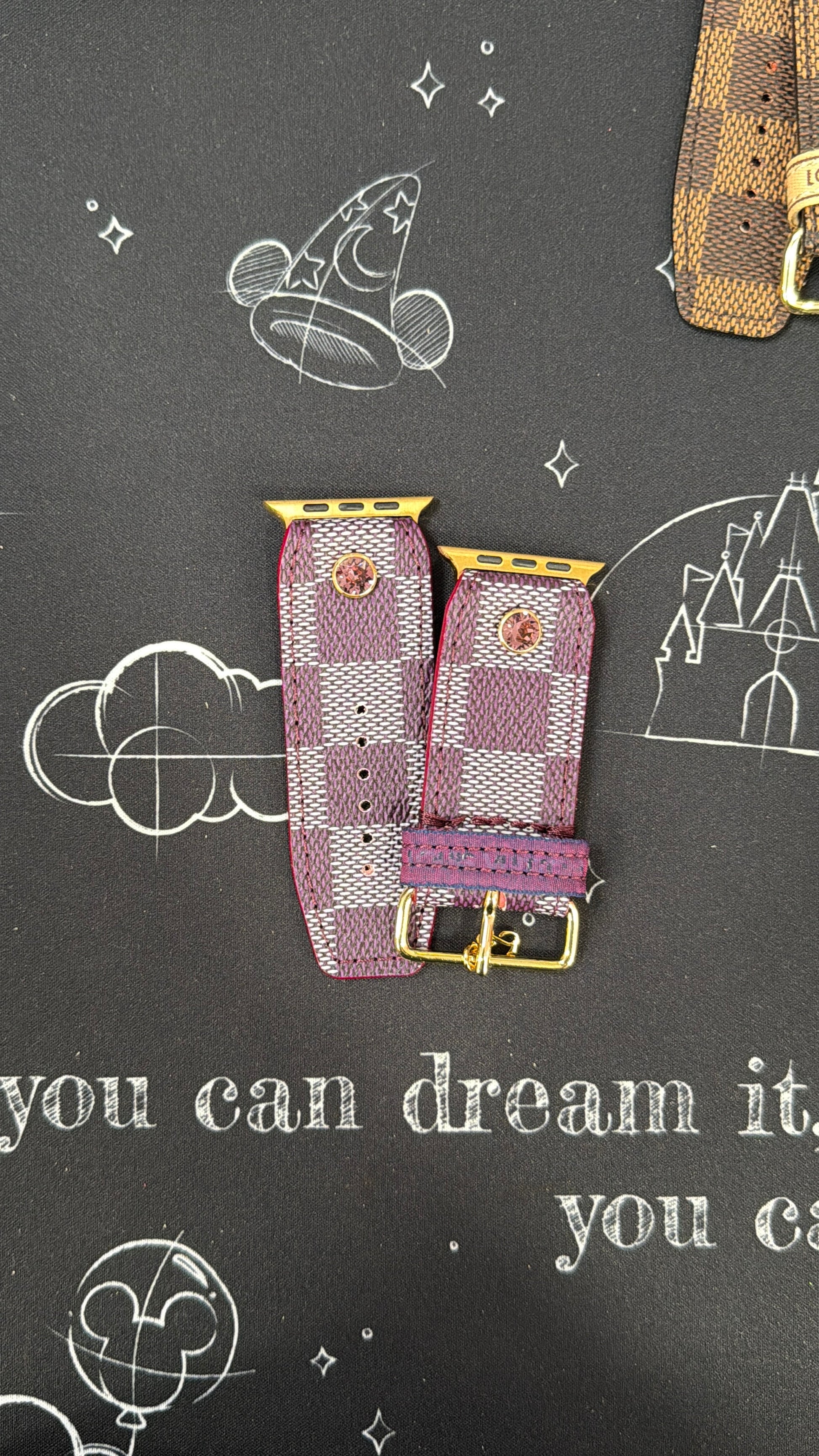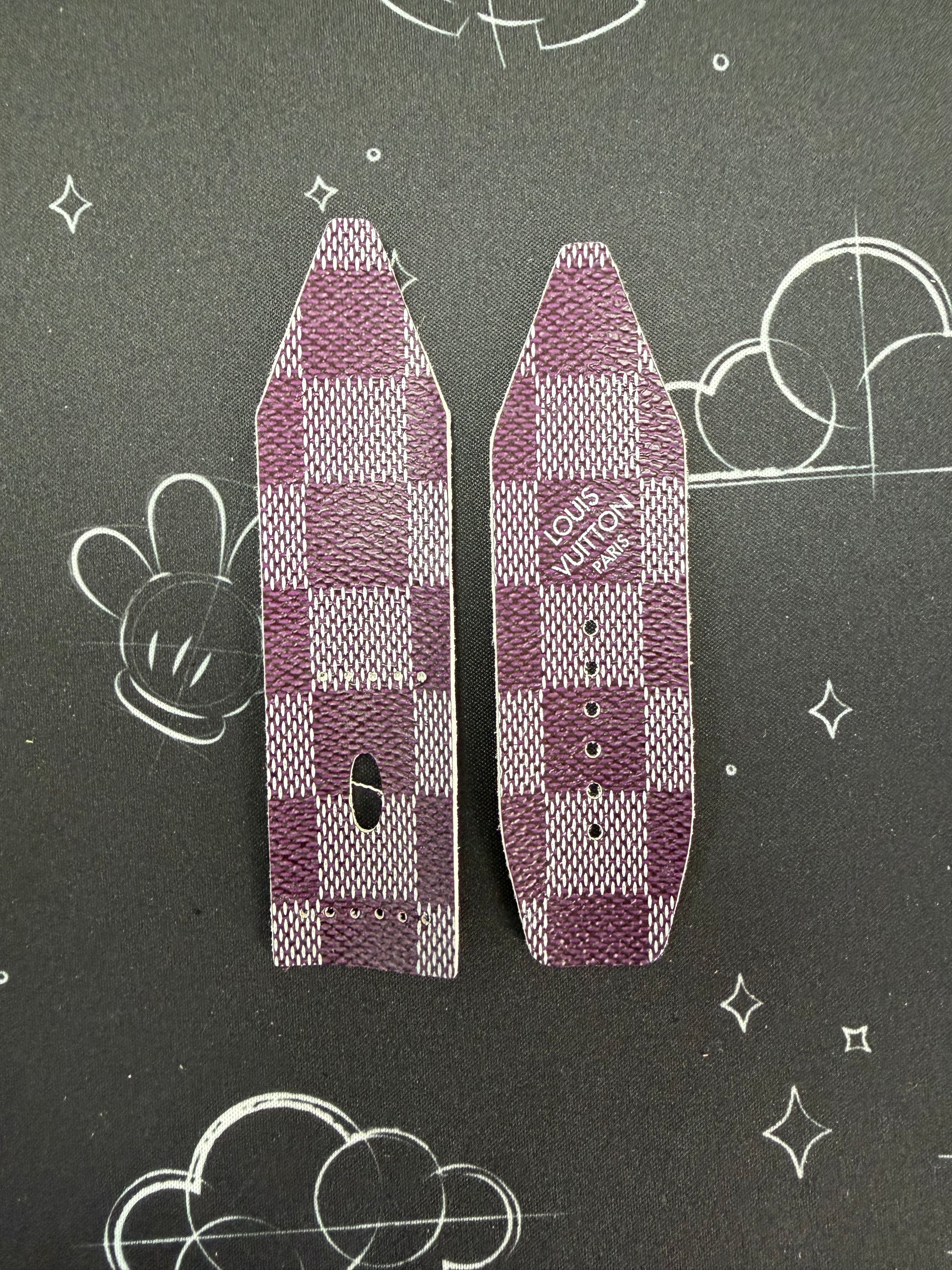 Esta es una auténtica banda Damier Azur LV reciclada. Un material de cuero con el LV Damier Azur. Este es nuestro estilo superpuesto con cuero color champán. Se combina con cristal AB con borde dorado y herrajes a juego. Sin embargo, su revestimiento, cristal y hardware son personalizables. Especifique sus personalizaciones en la sección de notas al finalizar la compra.