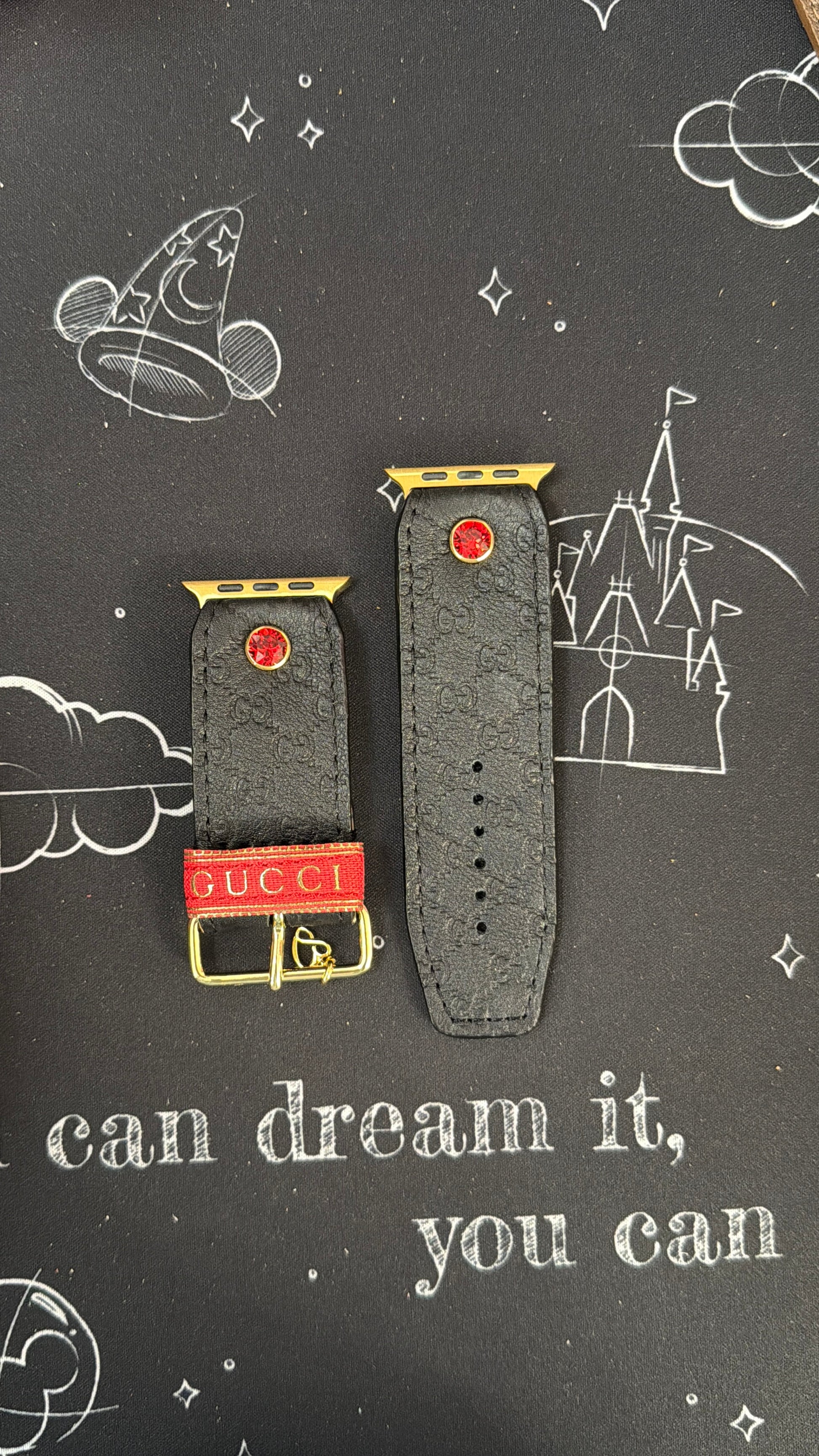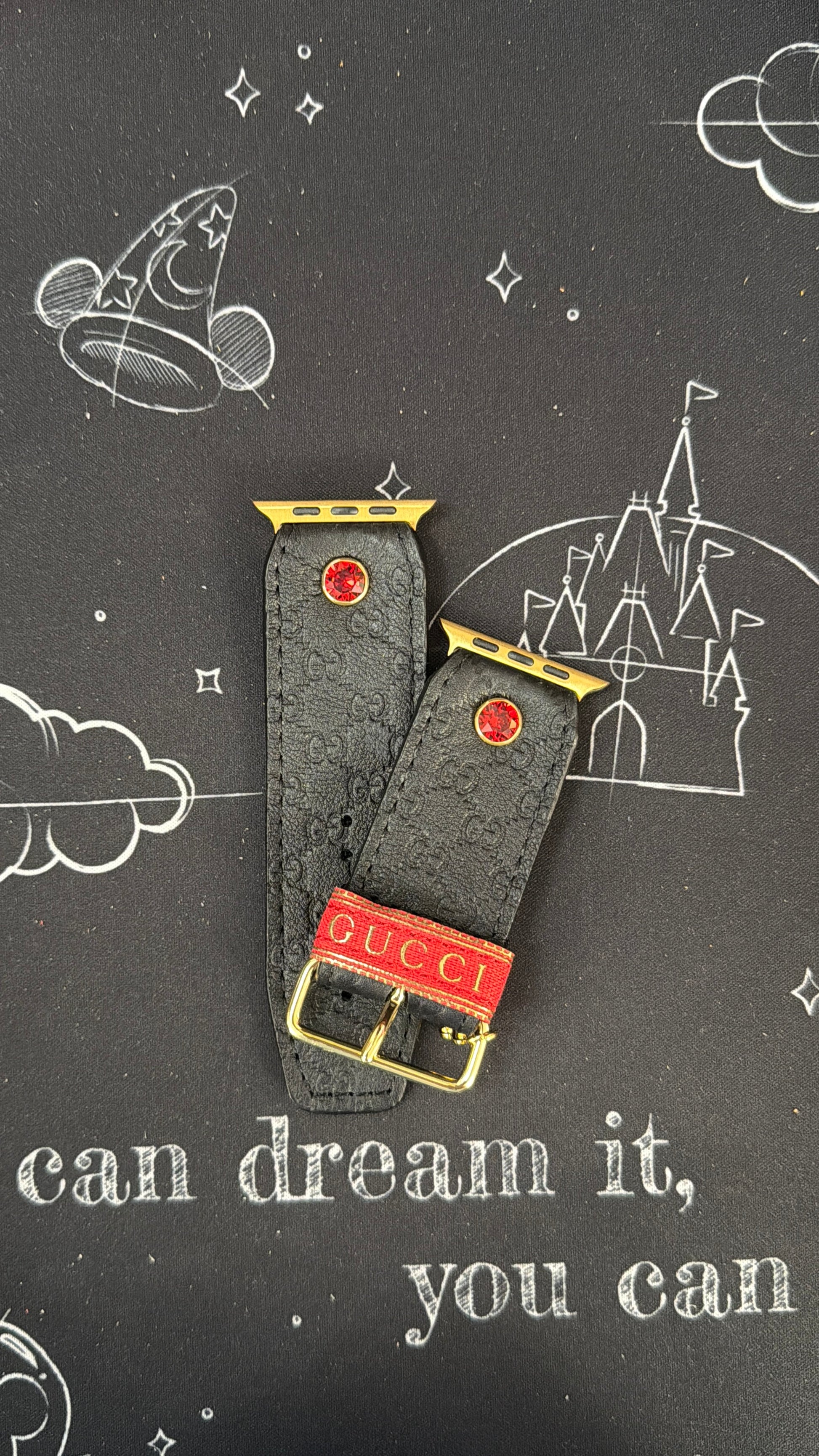 Una auténtica correa de cuero micro GG morado reciclado forrada con ante lila brillante. Su revestimiento, cristal y herrajes son personalizables. Por favor, especifique en la sección de notas al finalizar la compra.