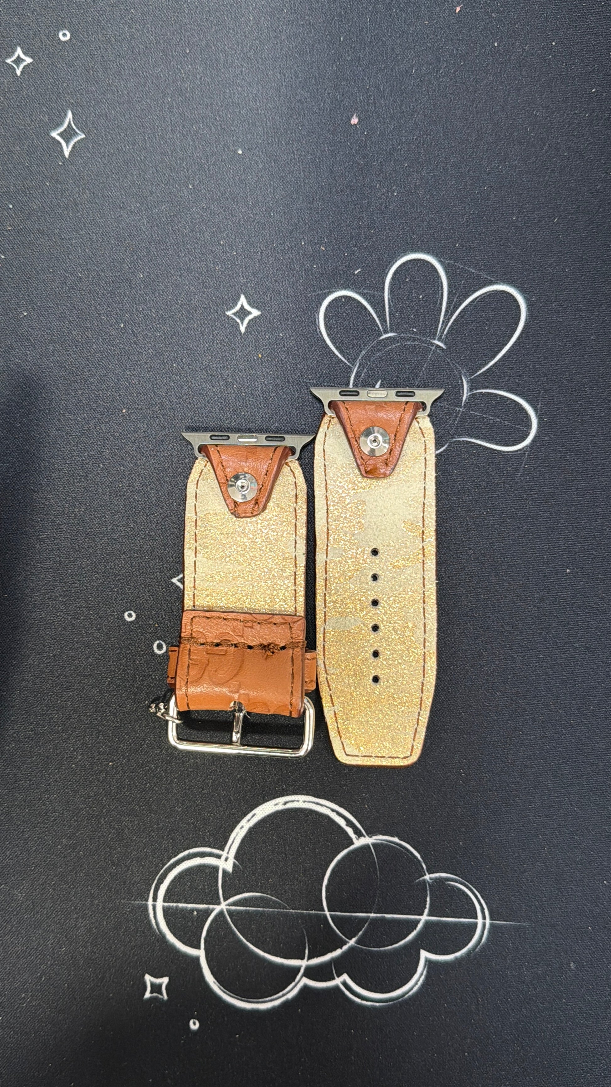 This is an authentic leather GG in an cognac color. This band sports the iconic GG monogram.