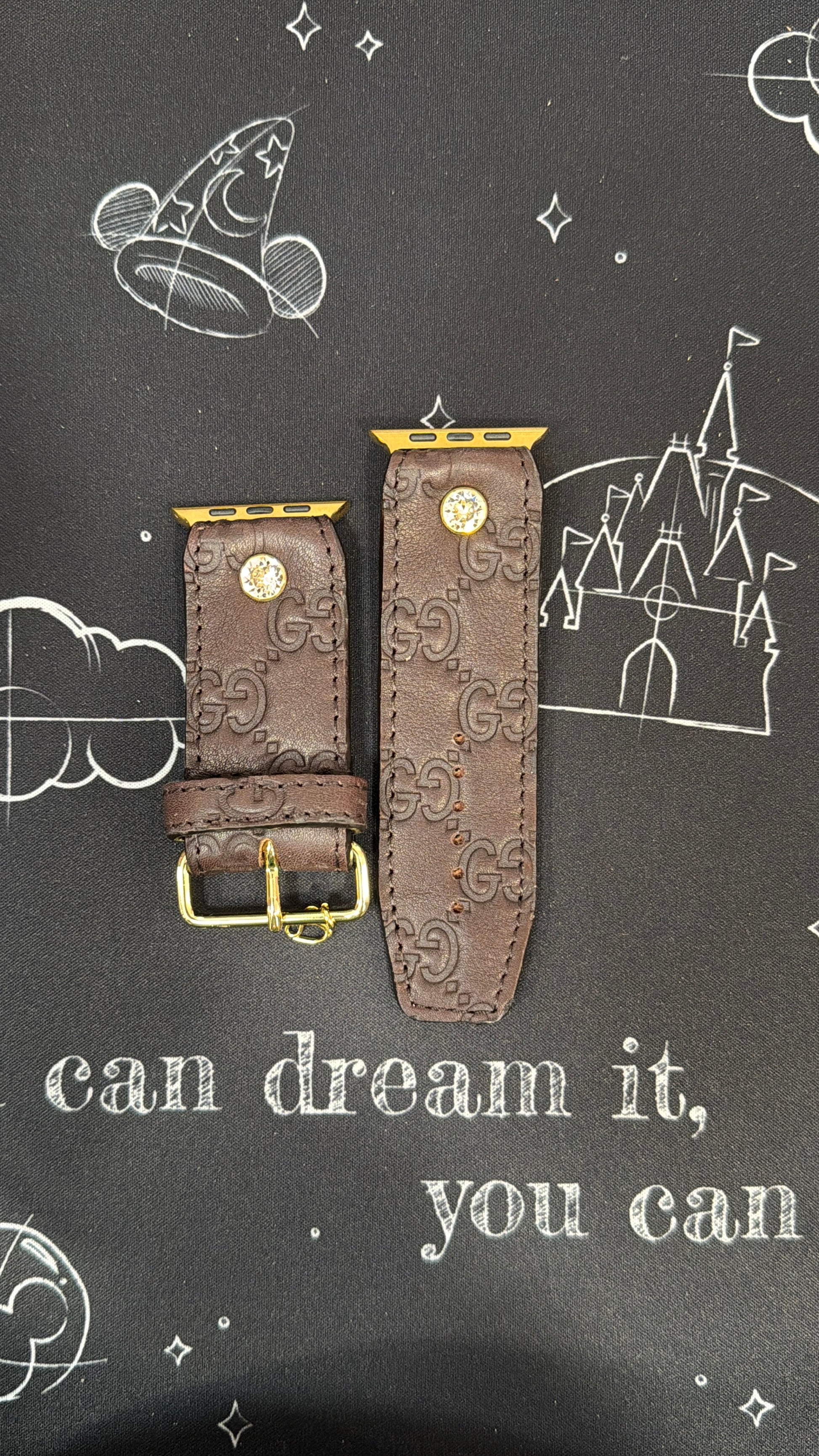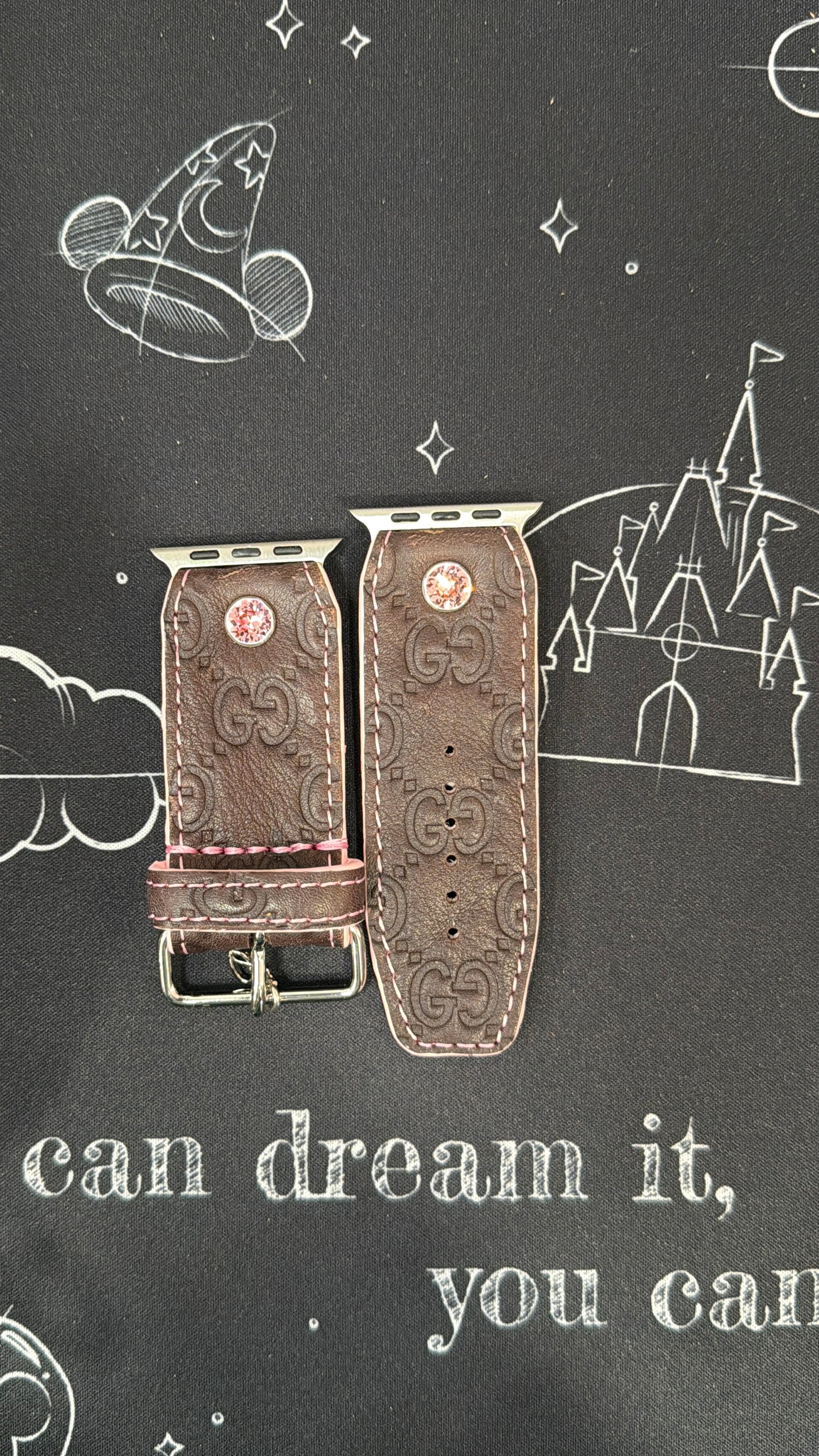This is an authentic leather GG in an orchid color. This band sports the iconic GG monogram.