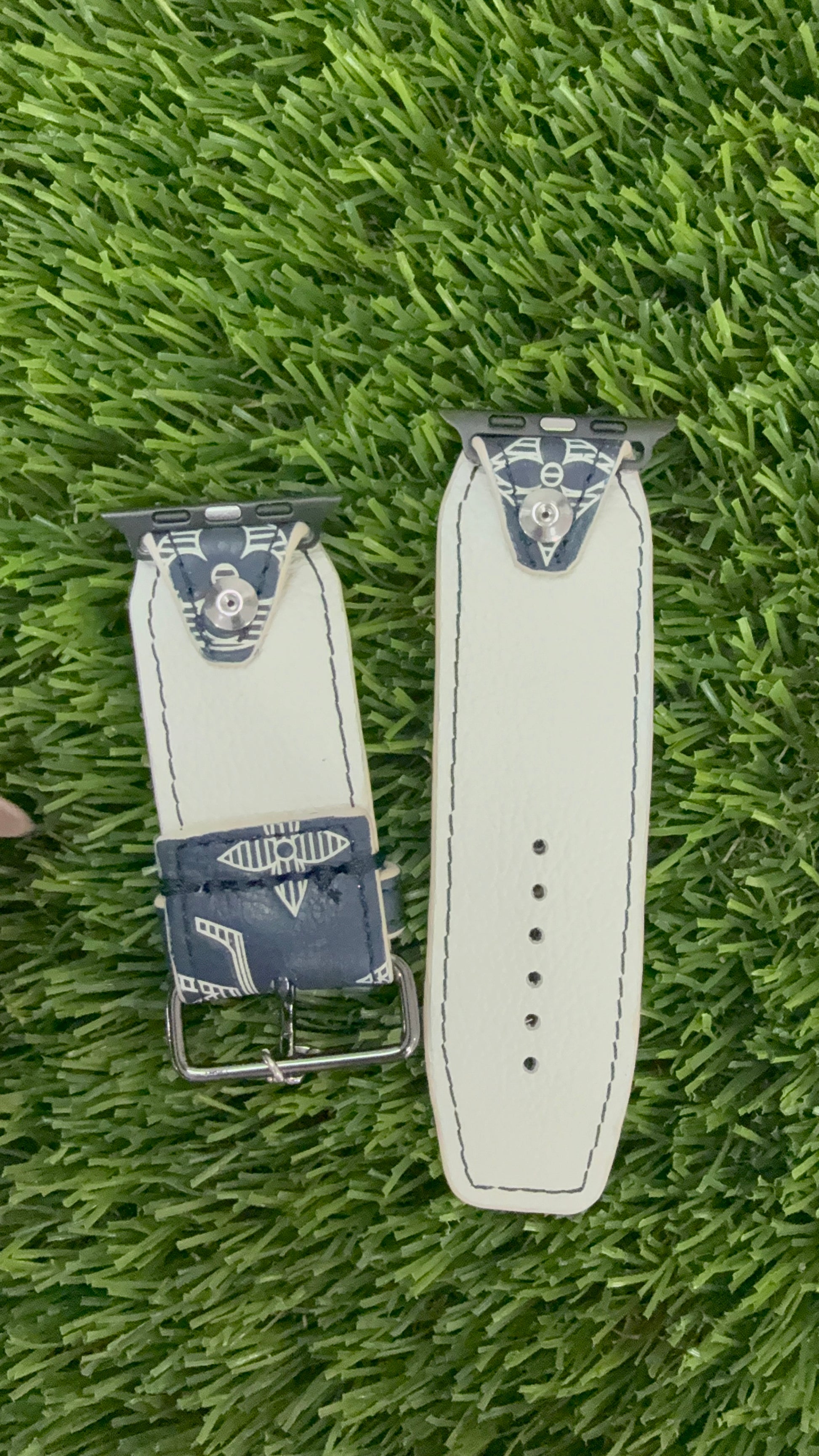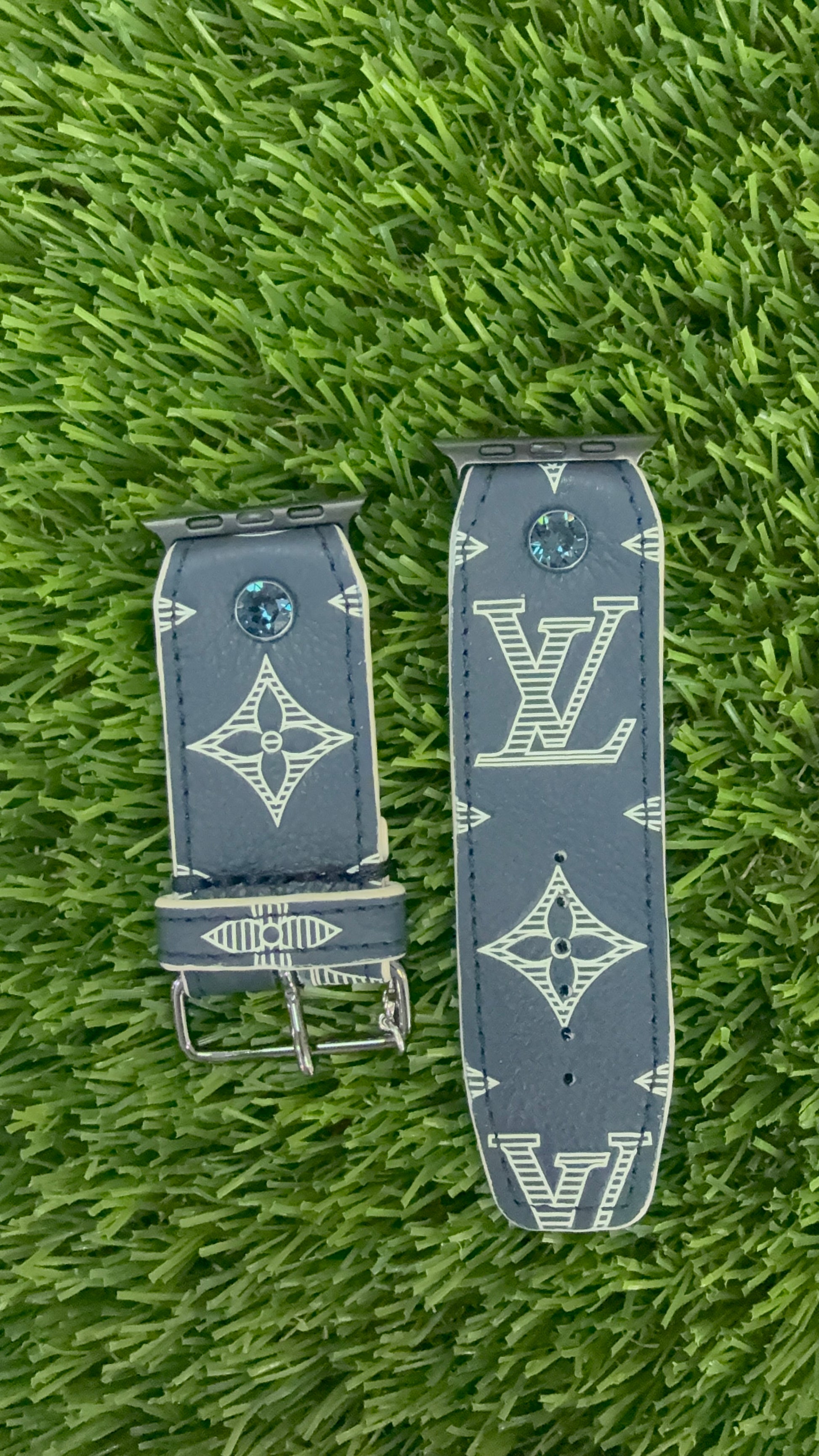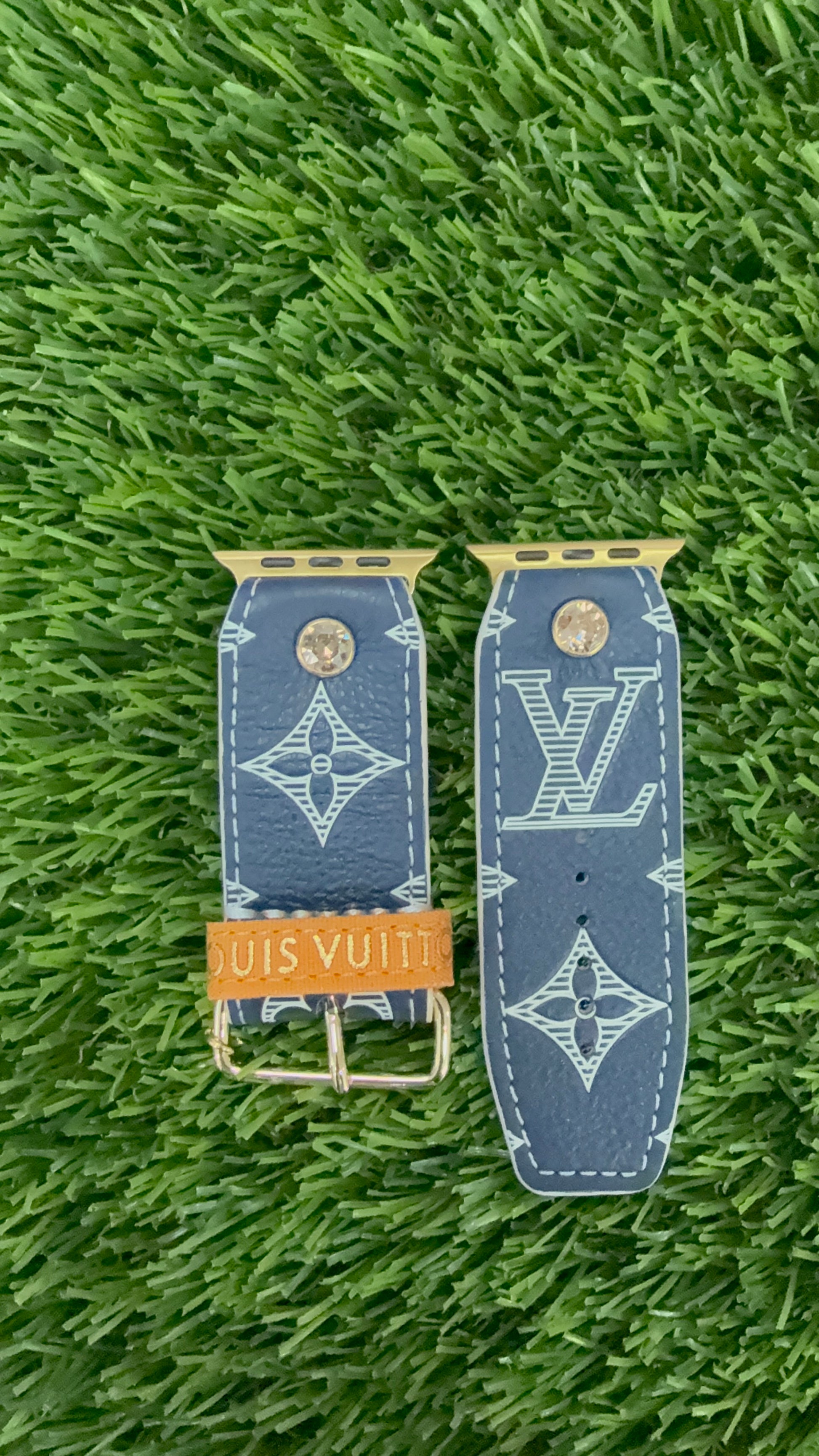 This is an authentic upcycled navy leather with the monogram in ivory. Hardware and liner are designed to your liking.