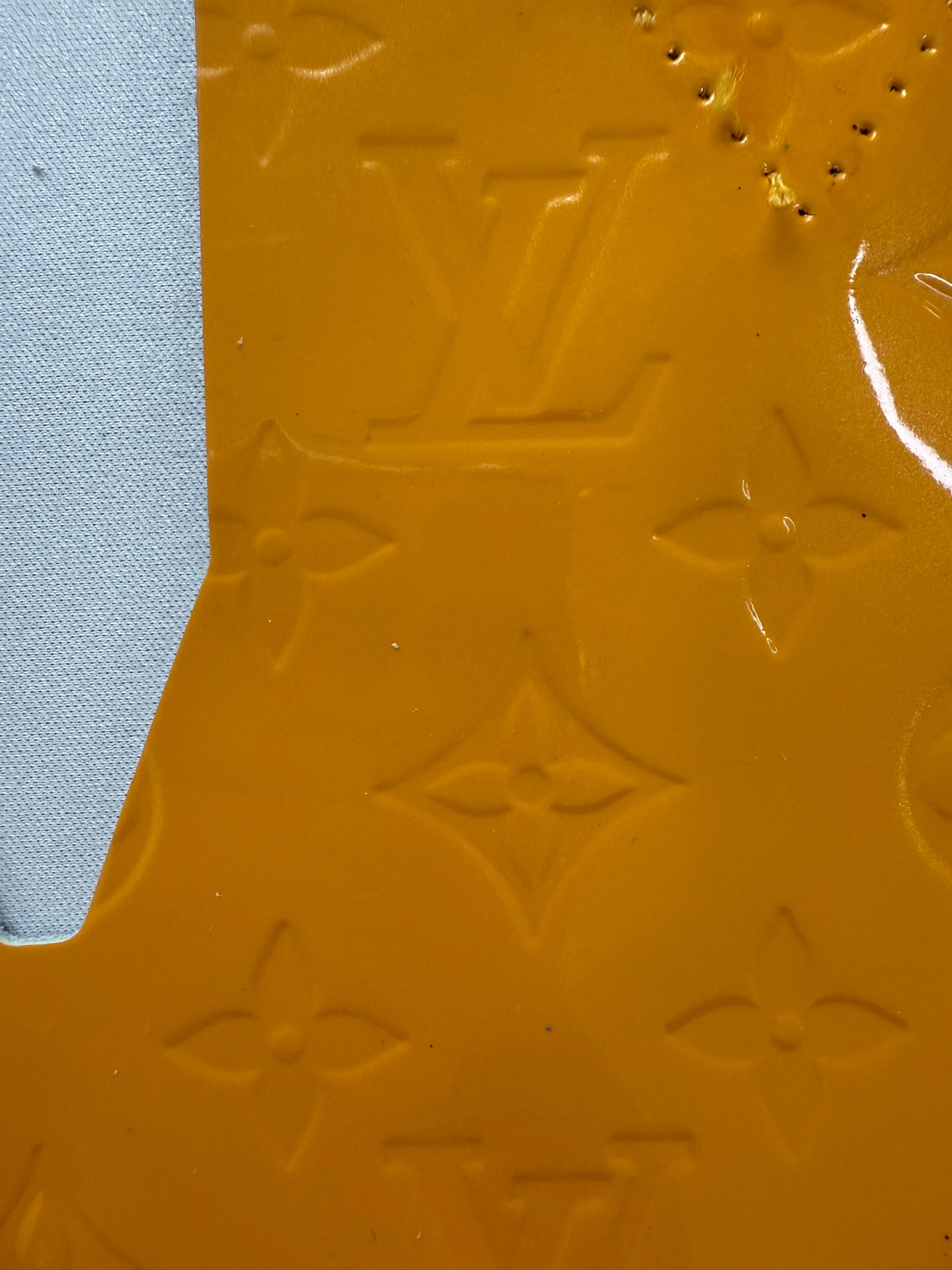 A patent leather Vernis band with a Mango color. These bands contain a blemished area, please see photos to see the blemishes and the price reflects the condition.