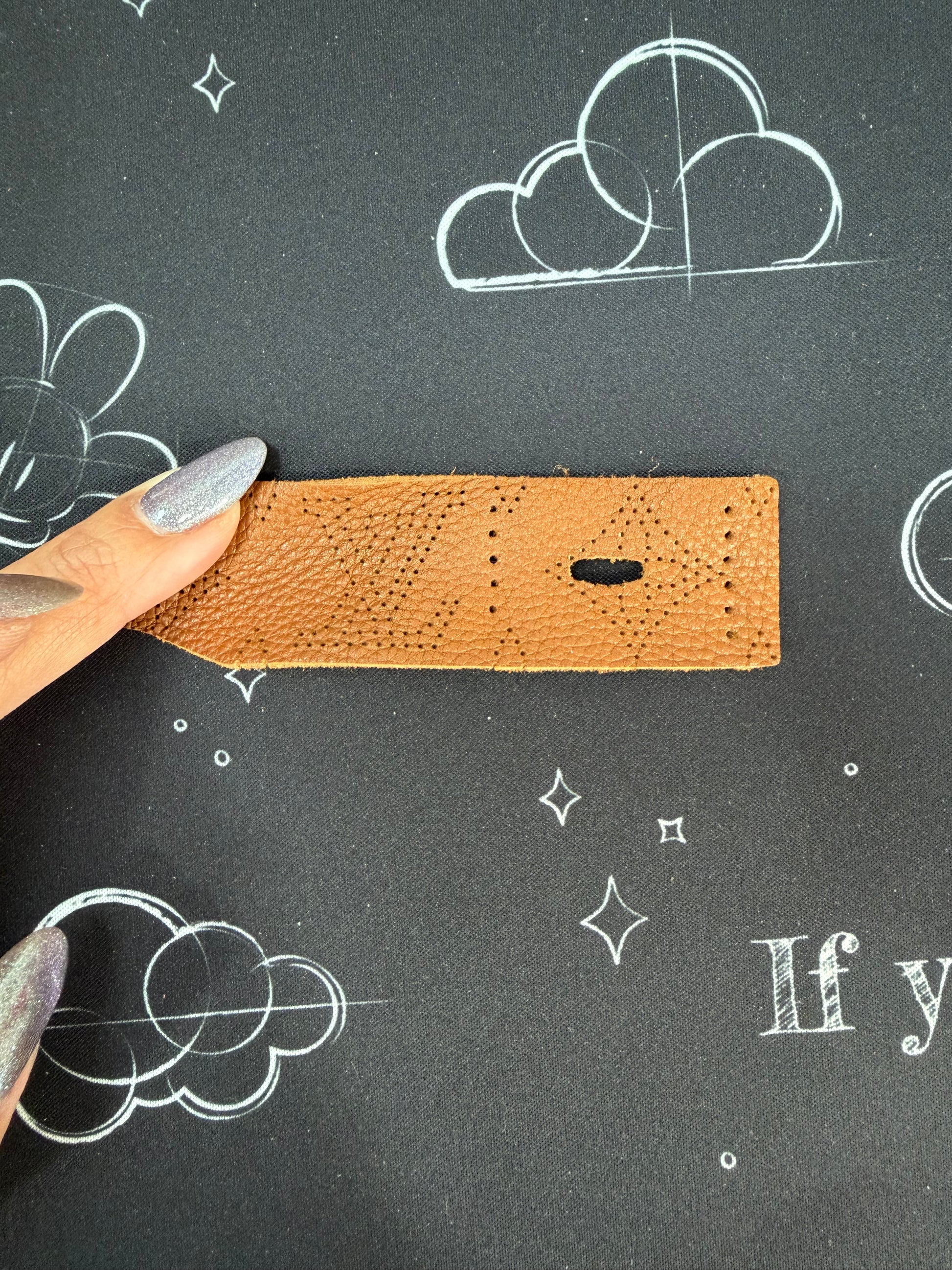 It is a leather band material with the iconic LV monogram as the hole. Hardware and liner are designed to your liking.