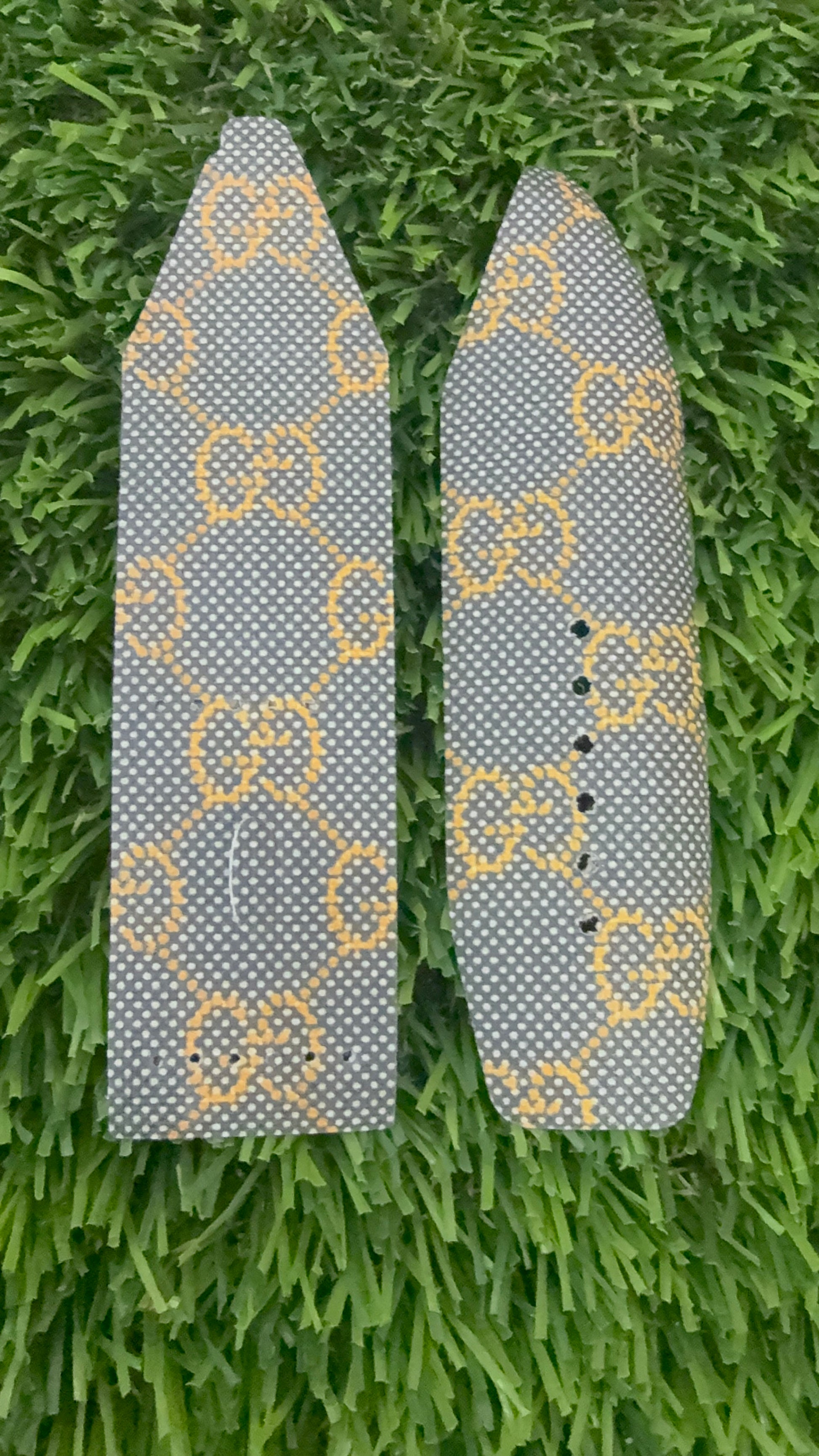 This is an authentic upcycle Gucci. It is a canvas band material with the iconic GG monogram with a variety of colors in the pattern.