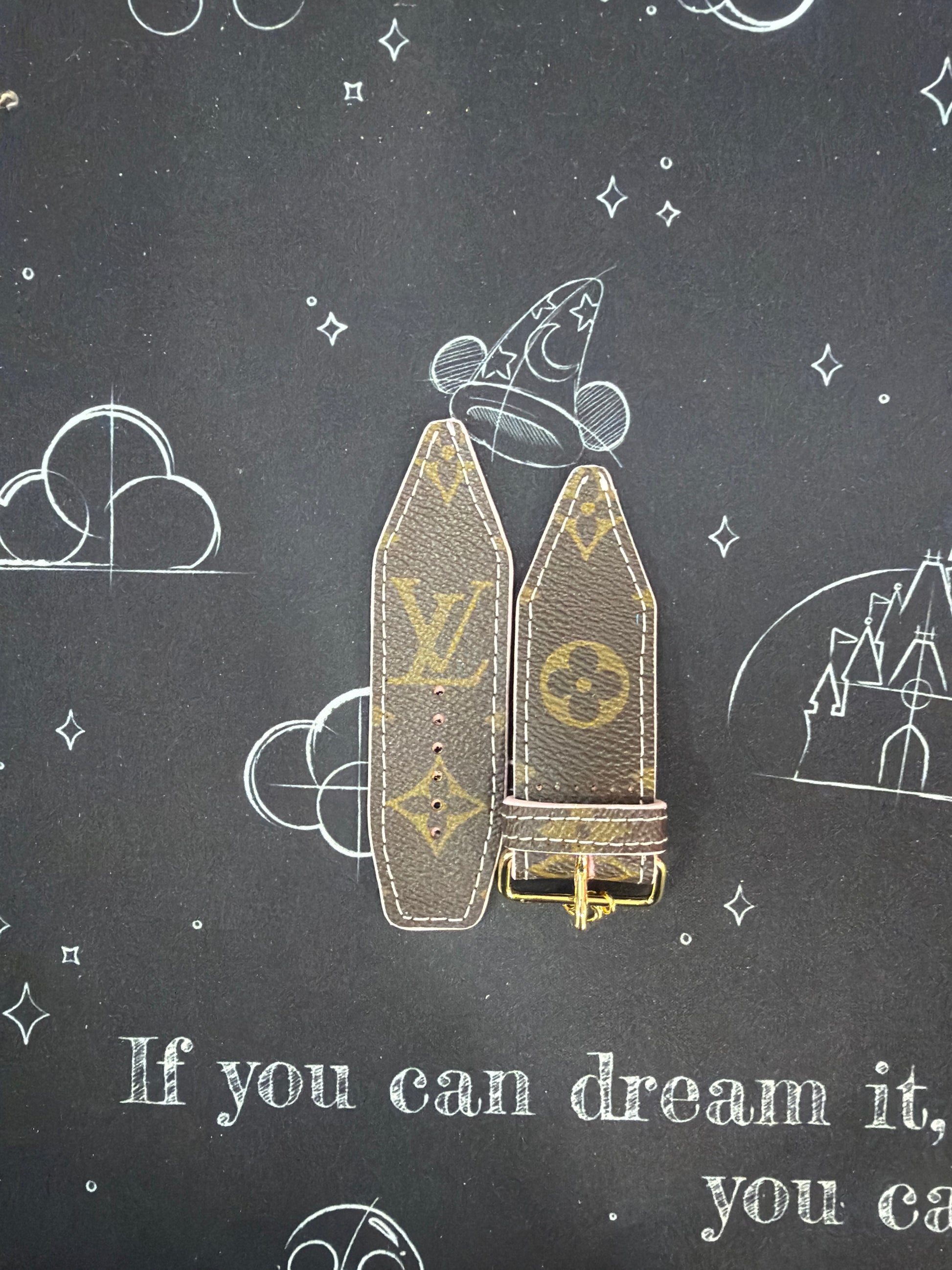 This is an authentic upcycled LV Monogram. It is a canvas band material with the iconic LV monogram.