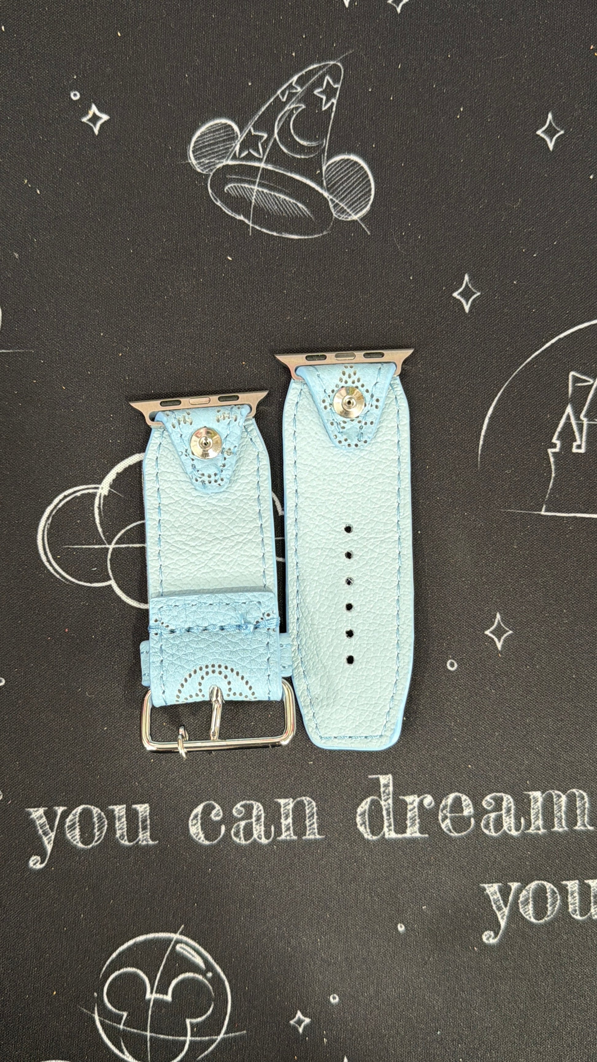 This is an authentic upcycled Rare LV Ice Blue Mahina. It is a leather band material with the iconic LV monogram as the hole. Hardware and liner are designed to your liking.