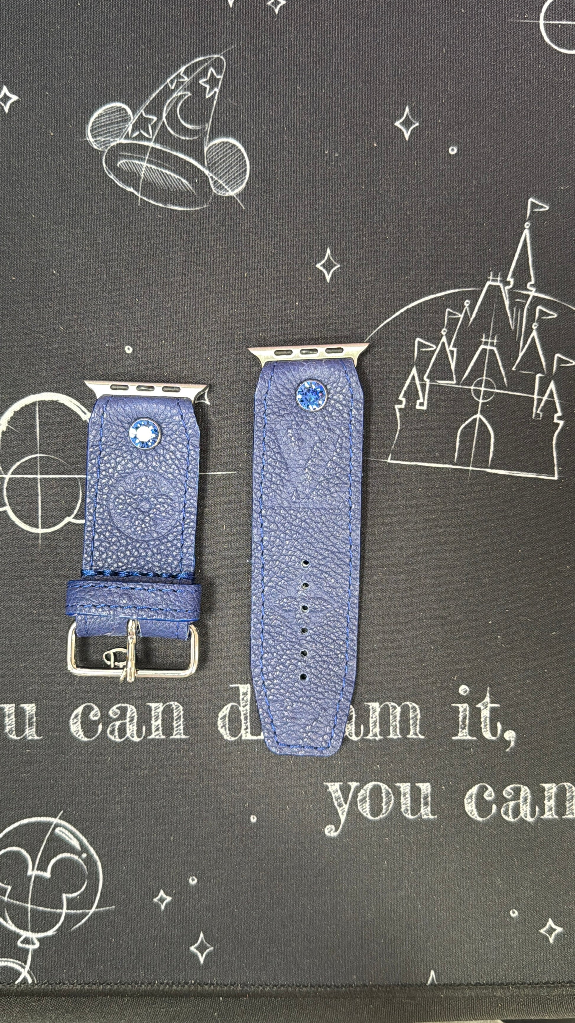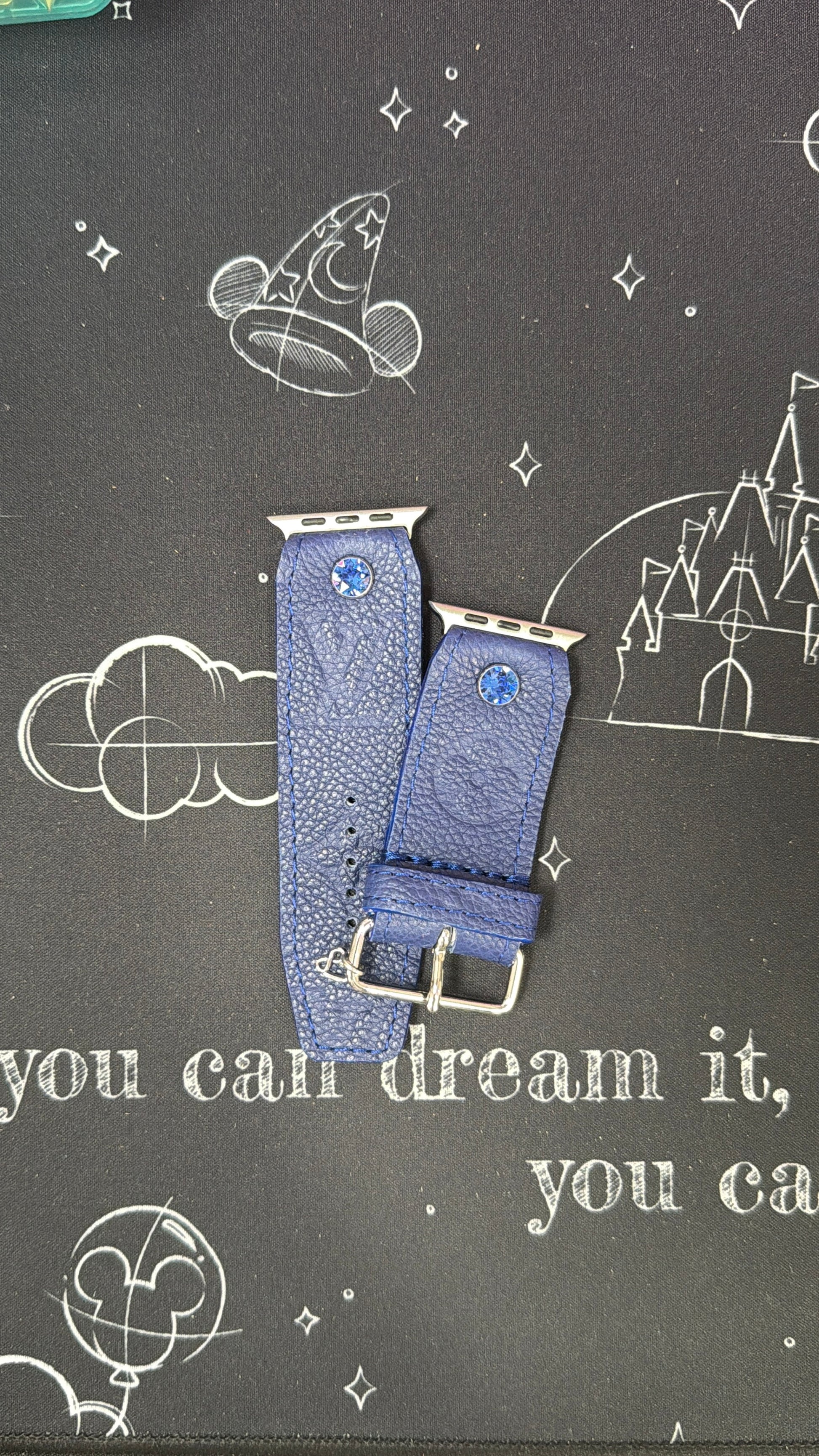 This authentic upcycled LV band is an embossed Celeste, blue leather.