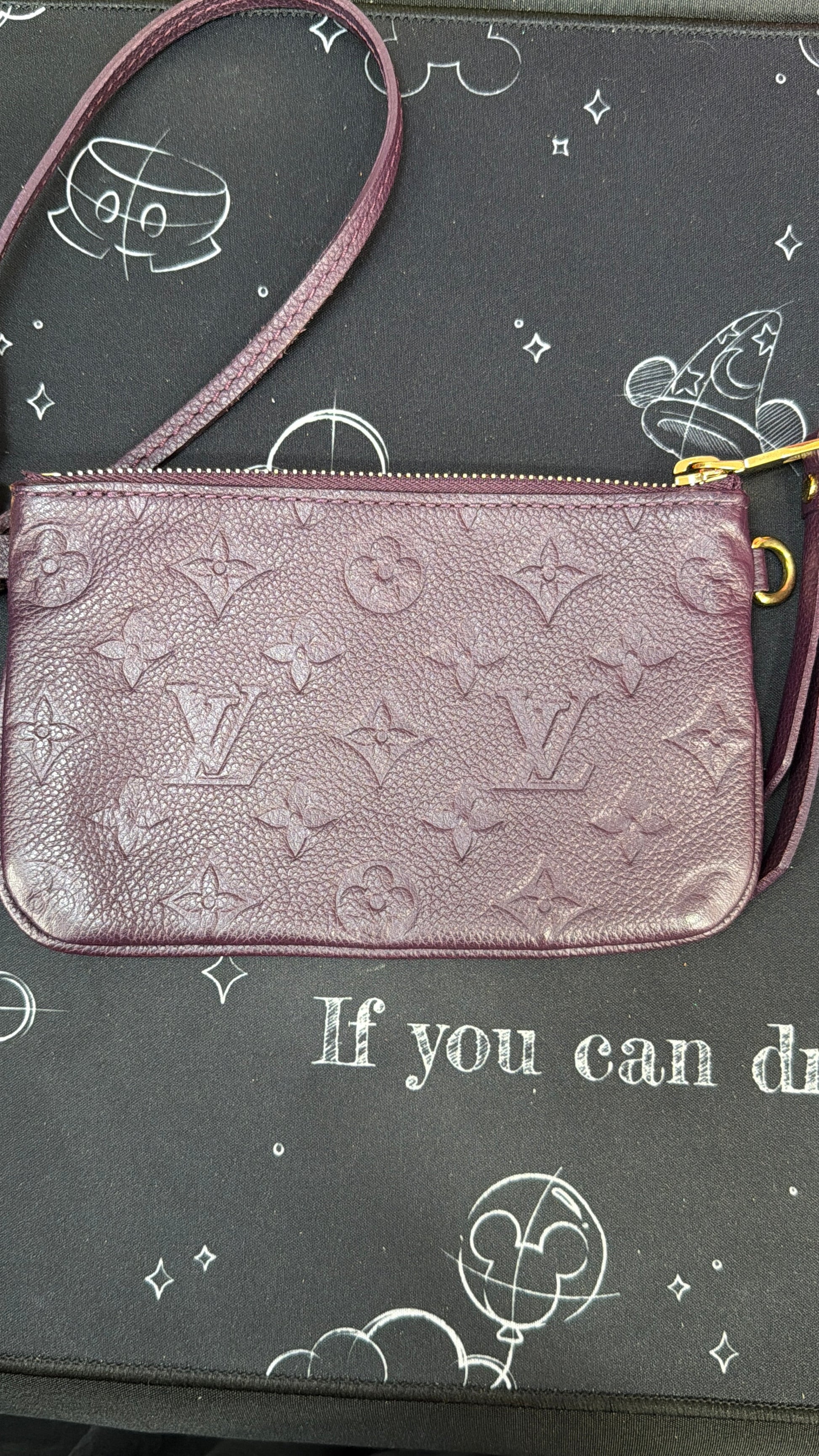 LV Aube Empreinte Zippered Wristlet (Purple)