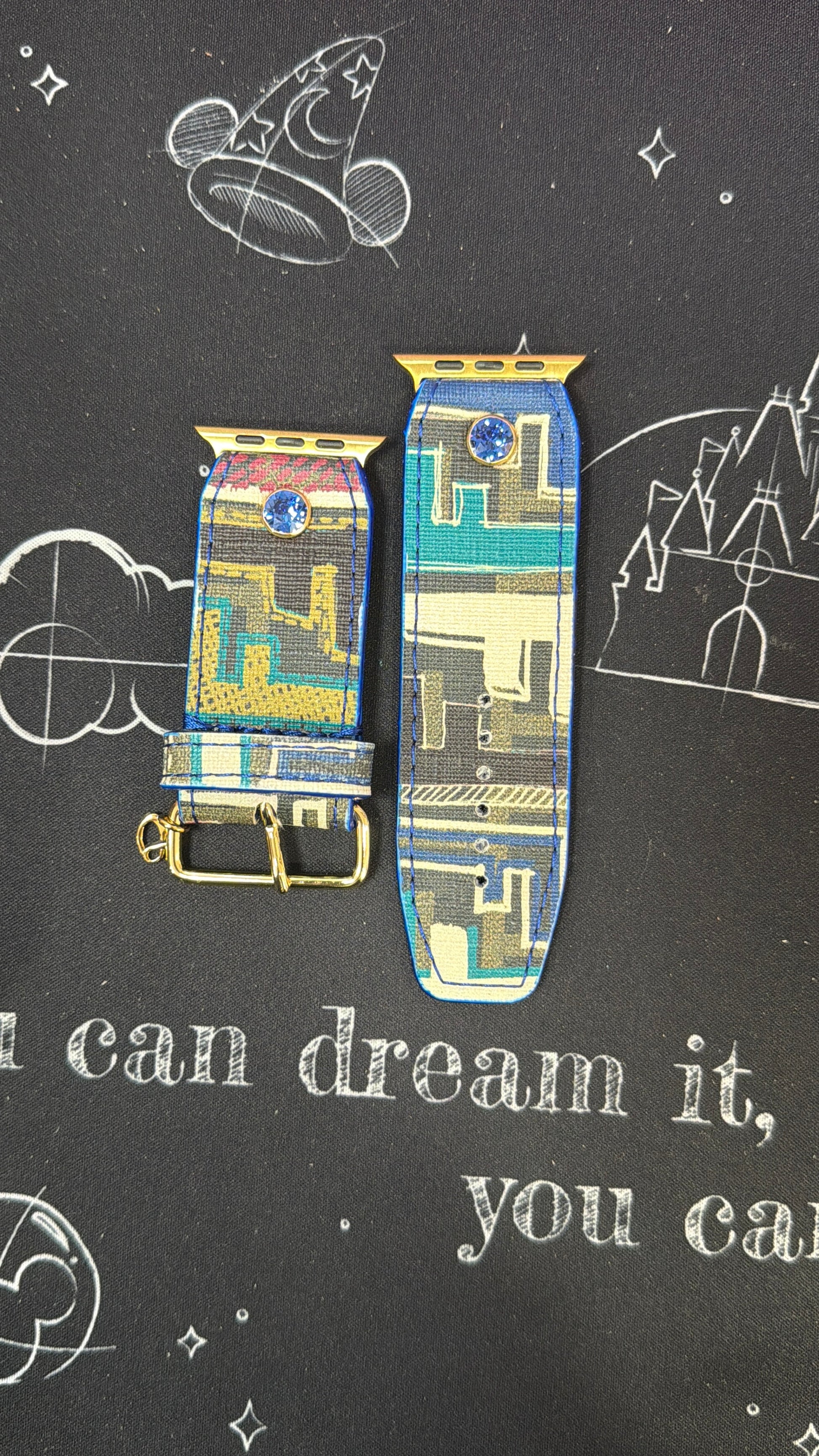This authentic upcycled olive colorful Fendi is a coated canvas band lined. The liner and edge paint are Blue colored. Hardware and crystals are customizable.
