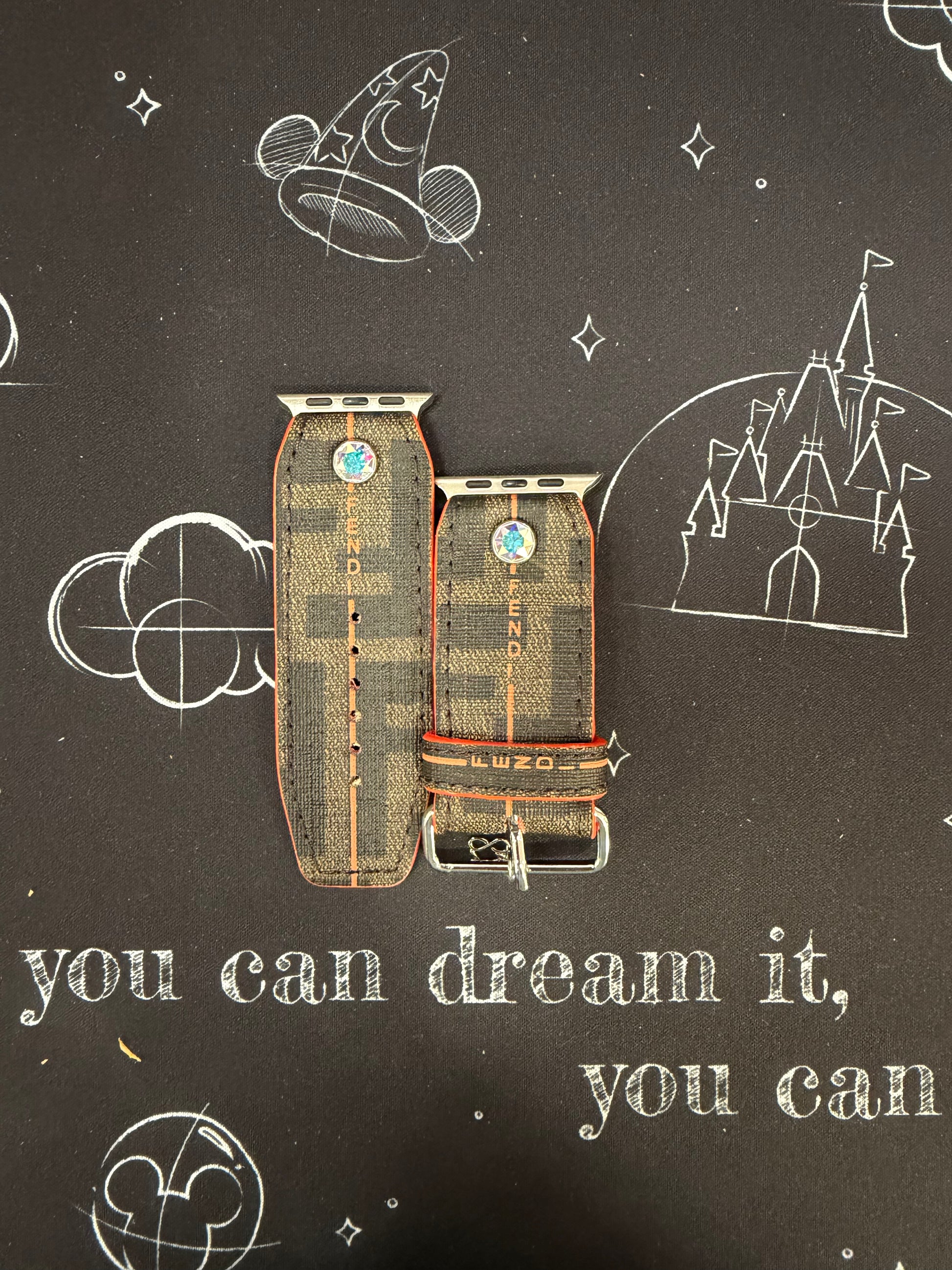 An authentic upcycled brown Fendi with rainbow-colored stripes running vertically. Buyer can selected the color they wish.